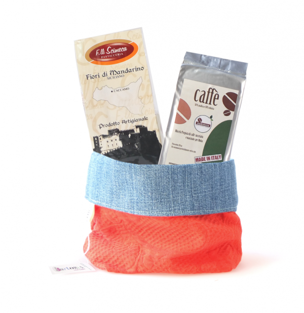 Cestino piccolo di stoffa Sartoria Sociale: di tessuti diversi e con diverse composizioni. Poiché ogni pezzo è diverso dall’altro l’immagine della foto è a titolo indicativo: il cestino è prodotto con materiali da riciclo tessile e ciò garantisce originalità ed esclusività.